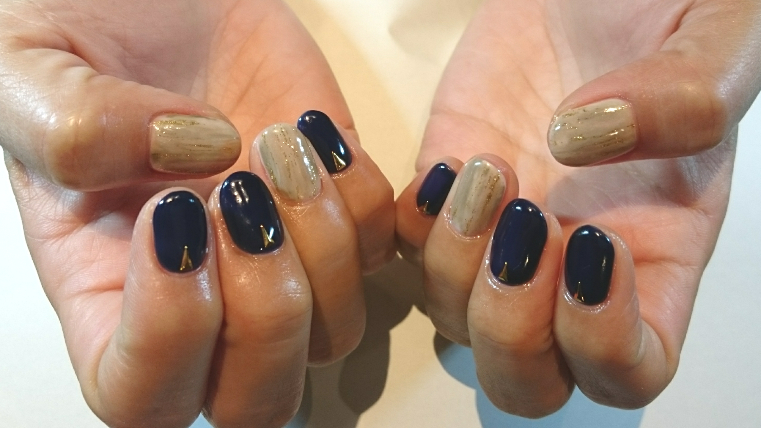 — ネイル — お客様ネイル♪ 2016年9月17日 こんにちは☺ネイリスト宮嶋です 本日はお客様ネイルをご紹介いたします ネイビーとアイボリーの組み合わせ カーキやグレージュなどの秋カラーも使用してます 最近はシンプルなネイルにされる方がとても多いのですが、 数本アートを取り入れるとポイントになっておすすめです